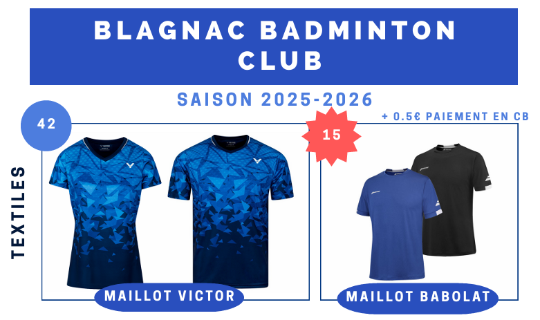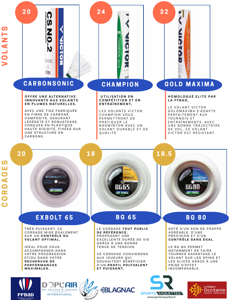 La boutique du club vous permet de profiter d’excellentes remises sur les volants, cordages et textiles !